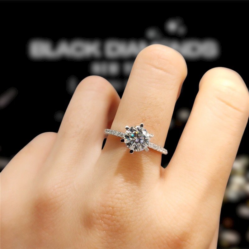If you’re looking for something special, look no further than this beautiful 18k White Gold Round Cut 1ct Certified Moissanite Engagement Ring by Black Diamonds New York. Crafted from white gold, the ring is set with a stunning round cut moissanite stone, complemented by additional stones along the band. This stylish, high quality piece won’t break the bank, making it the perfect choice for any occasion.