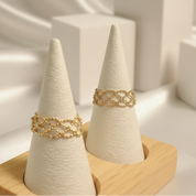 Indulge in the opulence of our 18k Yellow Gold Adjustable Retro Lace Ring by Black Diamonds New York. The intricate lace design of this exquisite piece is sure to turn heads and make a statement. Made with the finest materials, this gorgeous ring is a symbol of luxury and sophistication. Elevate your look with this classic accessory that combines high quality craftsmanship with affordability.
