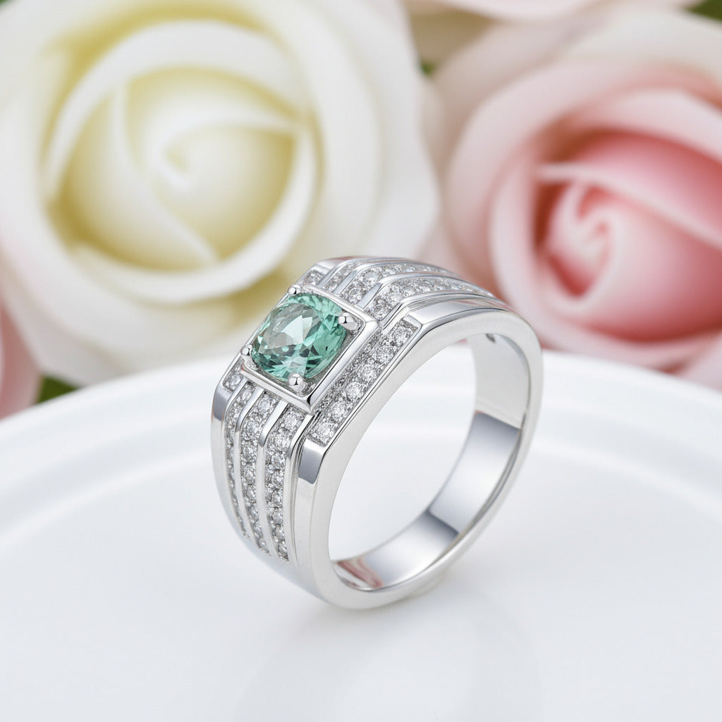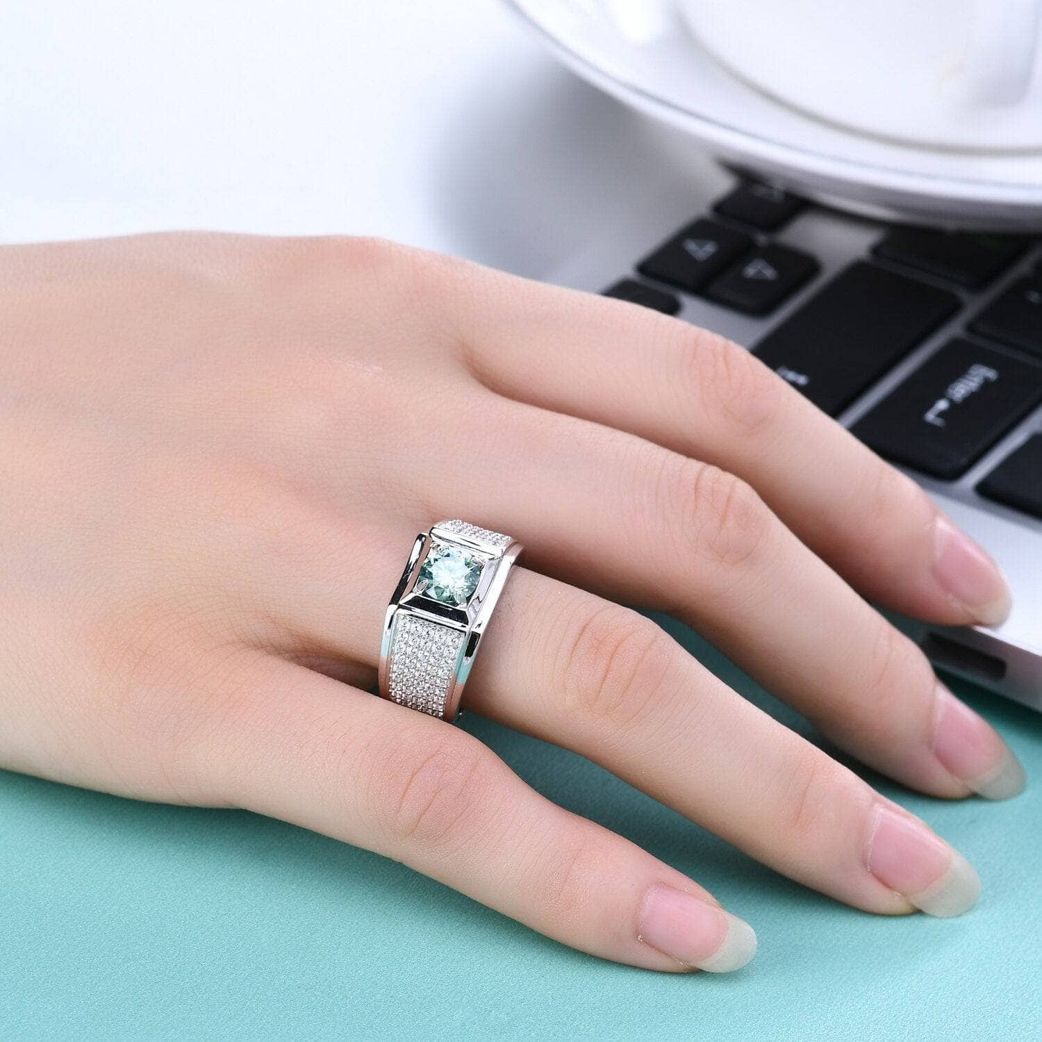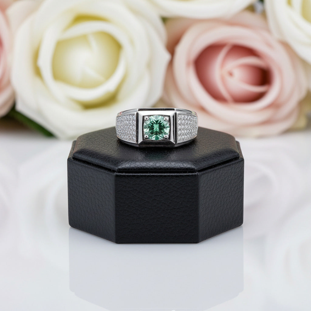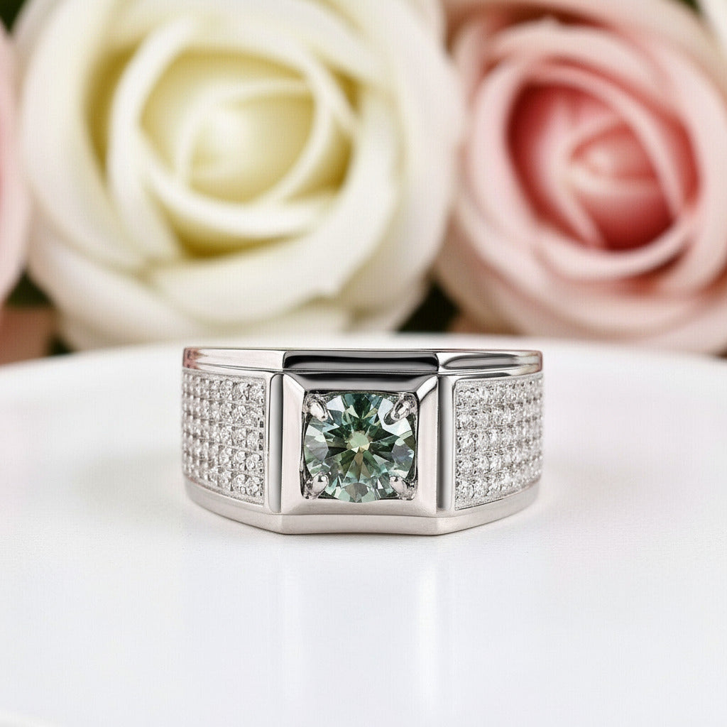1ct green diamond classic band with handcrafted detail and brilliant sparkle.
