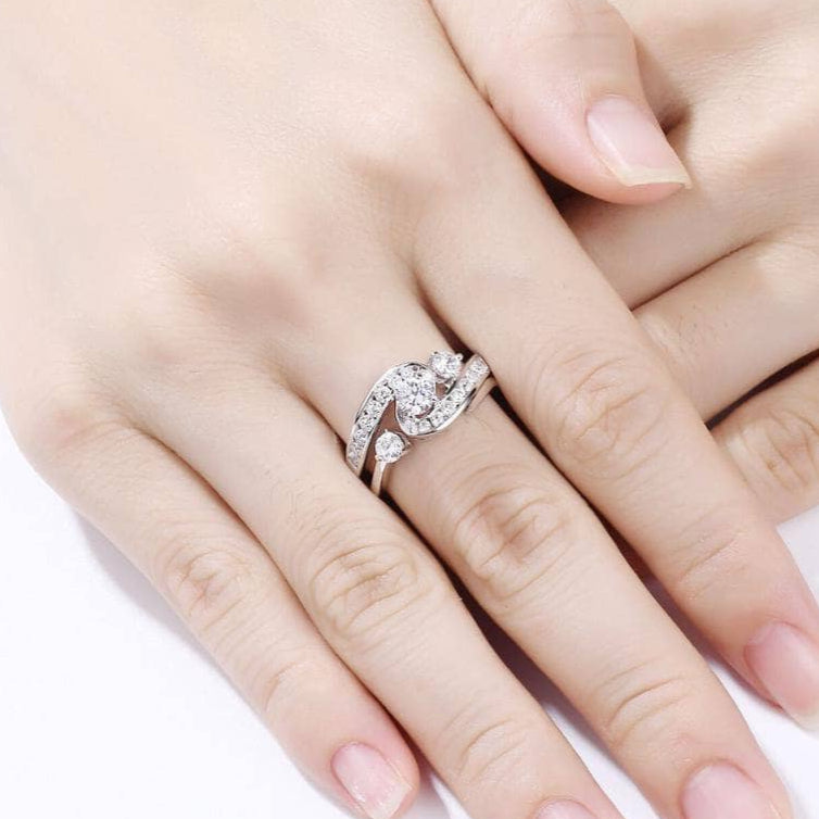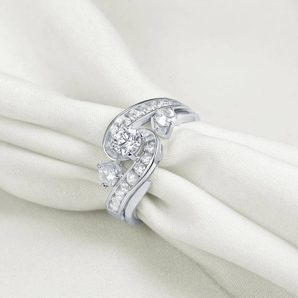 Experience elegance with our Three-Stone Swirl Engagement Ring Set, featuring a stunning diamond. Our rings are handcrafted to perfection using top-quality created diamond and solid 925 Sterling Silver, ensuring everlasting brilliance and radiance. This exquisite piece is not just for you, but also a timeless symbol of love for your loved ones and the one who loves you.