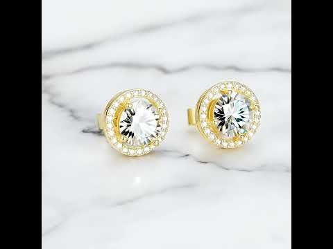 Black Diamonds New York's 2.0 Ct Round Cut Moissanite Stud Earrings feature sparkling 2-carat stones with VVS1 clarity. Made from 925 silver and coated five times in 18k gold, these earrings offer elegant shine and lasting quality for any occasion.