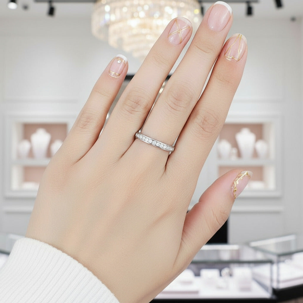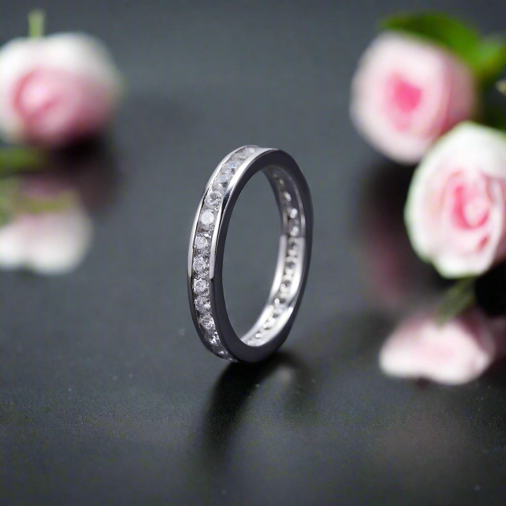 Upgrade your collection with the exquisite 2.0mm Diamond Round Channel Eternity Ring. Crafted with 925 Sterling Silver, this luxurious piece features Certified Moissanite stones, each 0.33 Ct in size, meticulously cut in a round shape and expertly set in a secure prong setting. Elevate your style with this elegant ring that exudes sophistication and exclusivity.