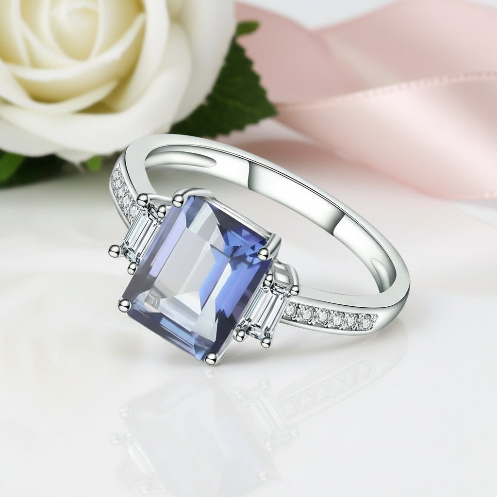 2.38 ct Emerald Cut Natural Gemstone There Stone Engagement Ring