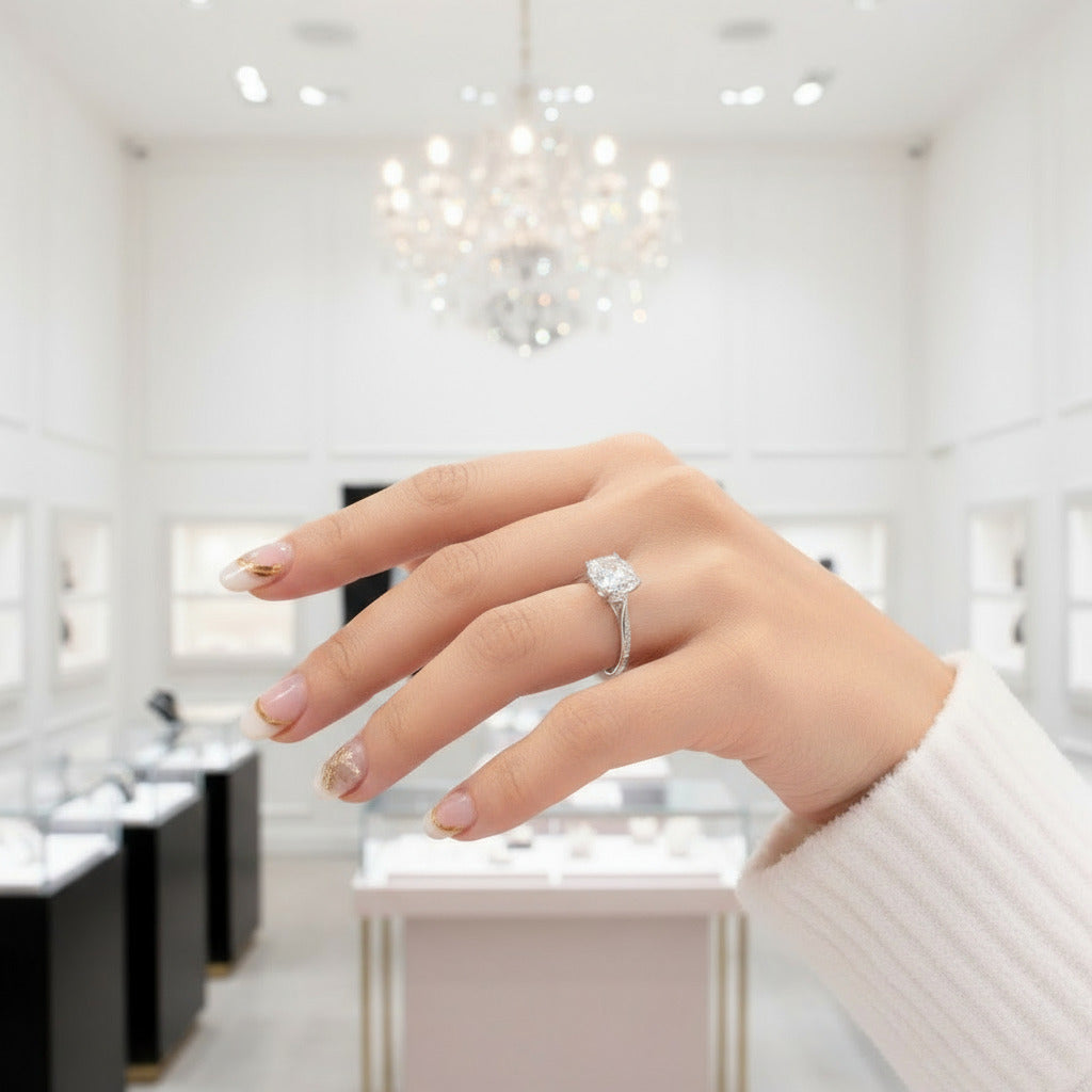 Stone Comparison: Sits brilliantly between Certified Moissanite and CVD Lab-grown Diamonds.