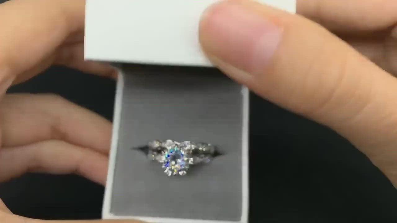 CERTIFIED MOISSANITE- stunning, near-colorless lab-grown gemstone (silicon carbide). Exhibits more fire (rainbow flashes) than diamonds. Hardness of 9.25 (Mohs scale), highly durable for daily wear. D-F color, VS1 Clarity, certified by GRA with a unique girdle code.