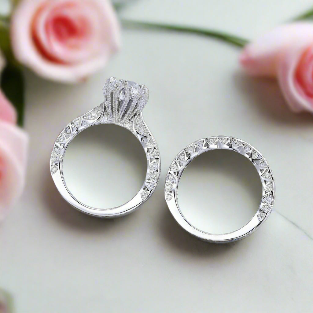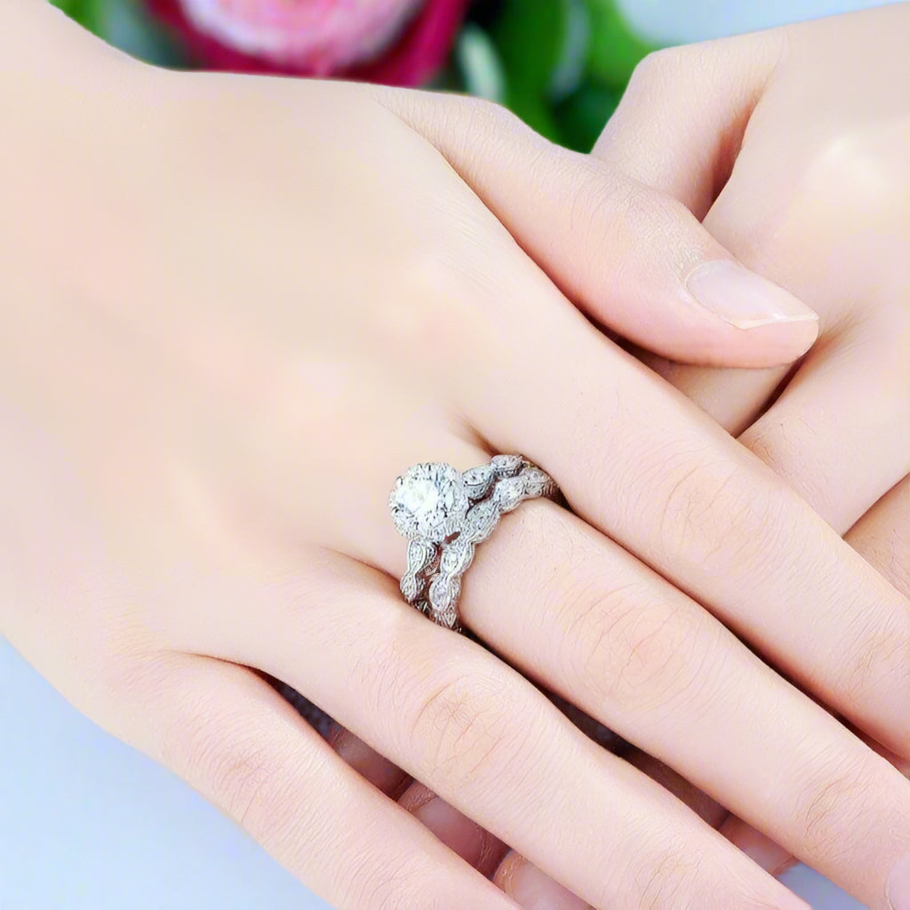 2.6Ct White Round Cut Diamond Vintage Style Ring Set