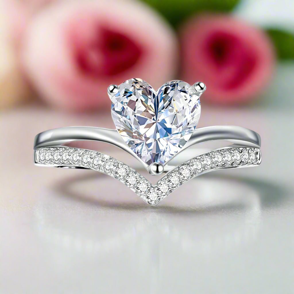 2.0 Ct Heart Cut Diamond Double Wave Band Engagement Ring