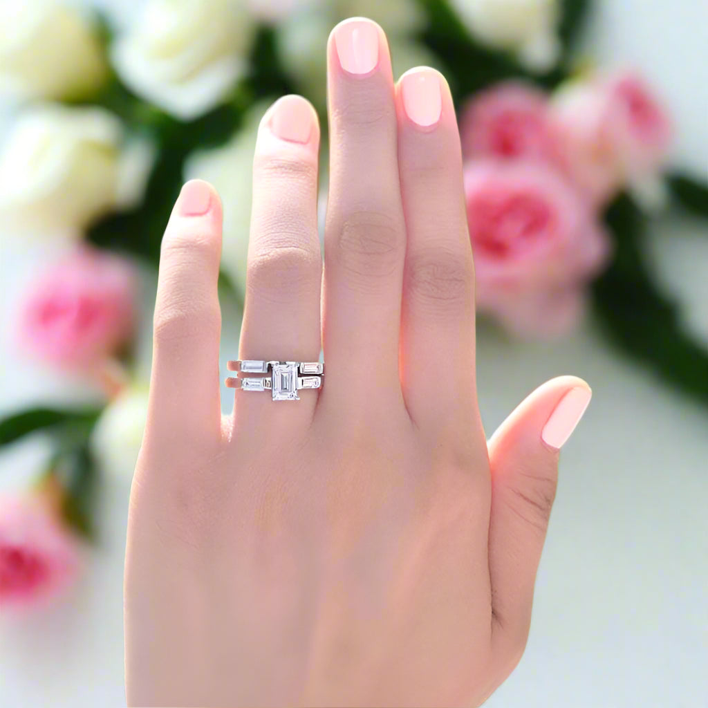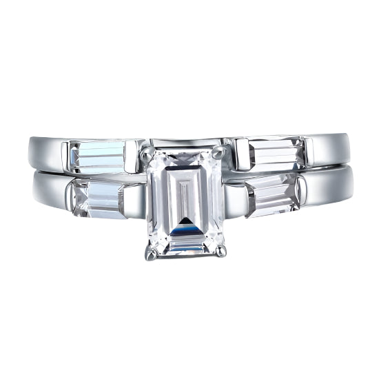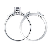 Get ready to say "I do" in style with this 2-piece wedding band and engagement ring set. Made with high-quality materials and designed to shimmer and shine, this set is meant to symbolize your love and commitment in the most beautiful way. Perfect for celebrating your special day and creating memories that will last a lifetime.
