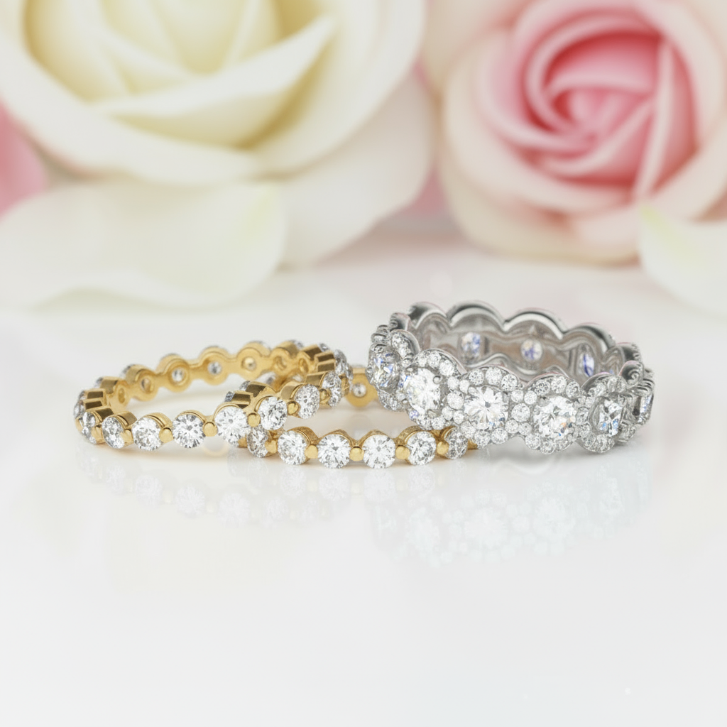 NATURAL DIAMONDS: Mined diamonds, prized for rarity and timeless elegance. A classic choice, suitable for daily wear but requires careful consideration of ethical sourcing and cost.