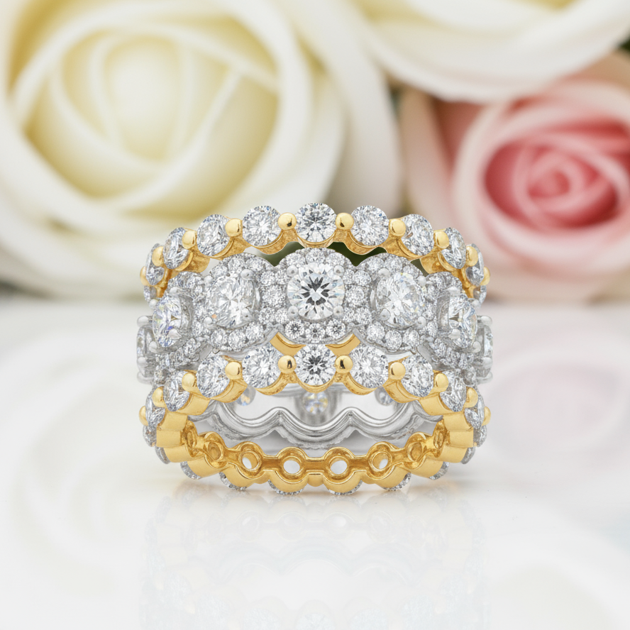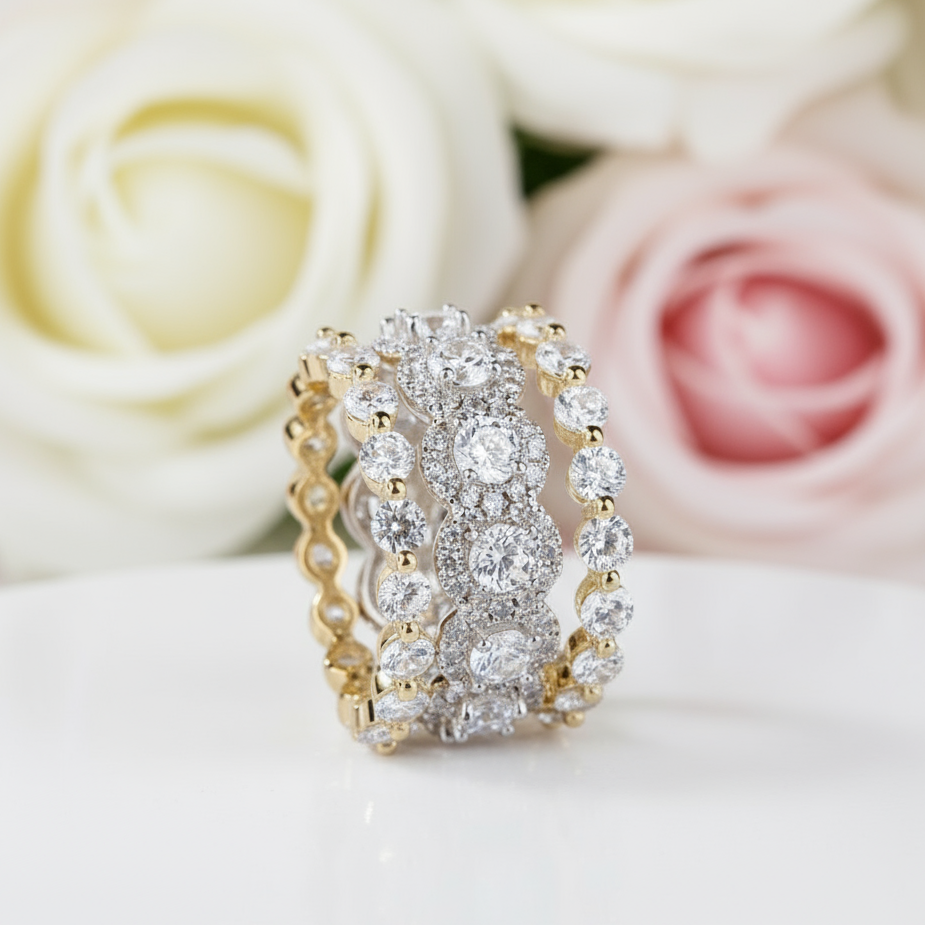 Stunning handcrafted 5.0ct diamond wedding set with elegant two-tone design. Versatile for engagements, weddings, and anniversaries. The perfect gift to mark life's most precious moments.