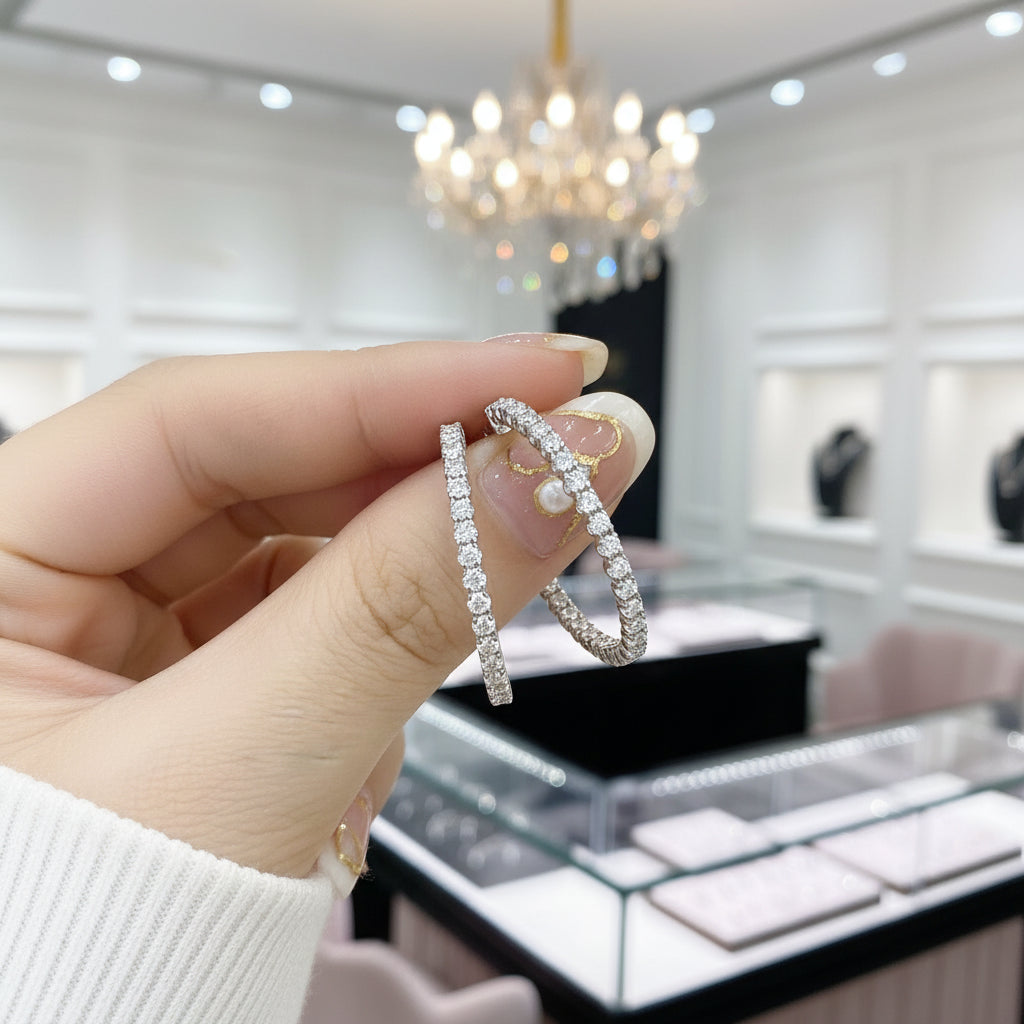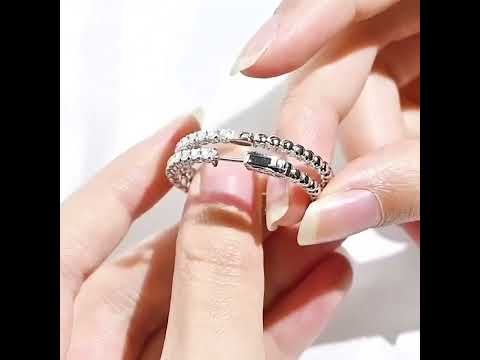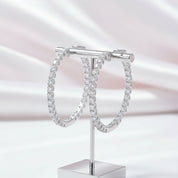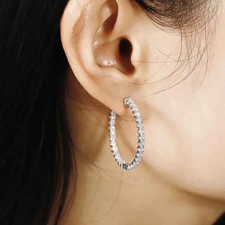 Elevate your everyday look with these stunning 2mm Round Cut Full Certified Moissanite Hoop Earrings by Black Diamonds New York. Crafted with the utmost precision, these earrings feature exquisite round-cut moissanite stones, totaling a remarkable 1.56 carats for the pair. The shimmering brilliance of these high-quality stones will turn heads wherever you go, leaving a lasting impression of elegance and sophistication. Made from 925 silver dipped 5x in Platinum, these affordable yet luxurious earrings offer a gorgeous, sparkly addition to any outfit. Treat yourself or surprise a loved one with these exceptional earrings that embody timeless beauty.