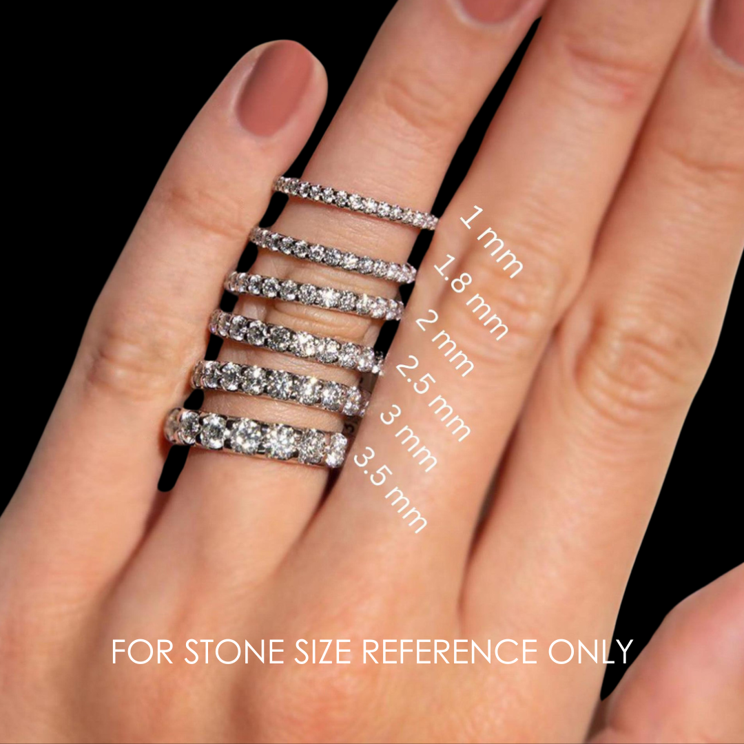 Please note that stone colors may vary slightly depending on the cut, size, stone carat, and type of stones/diamonds being used (e.g., Simulated Diamonds like Sona, Sapphires, Diamond Alternative, and Created Diamonds have more saturated hues compared to moissanite, lab diamonds, natural diamonds, and other gemstones). Please contact our team for more info.