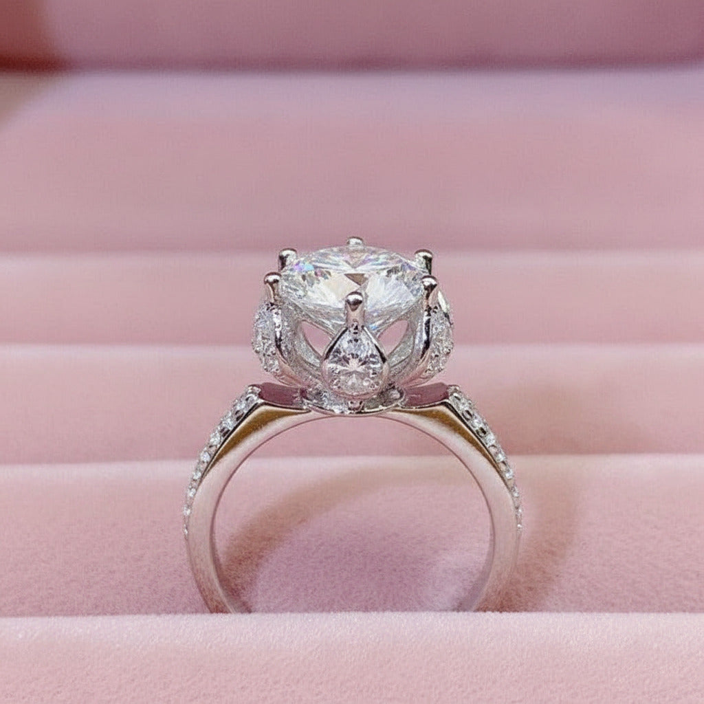 3.0 Ct 9mm Round Cut Diamond Blossom Bud Engagement Ring