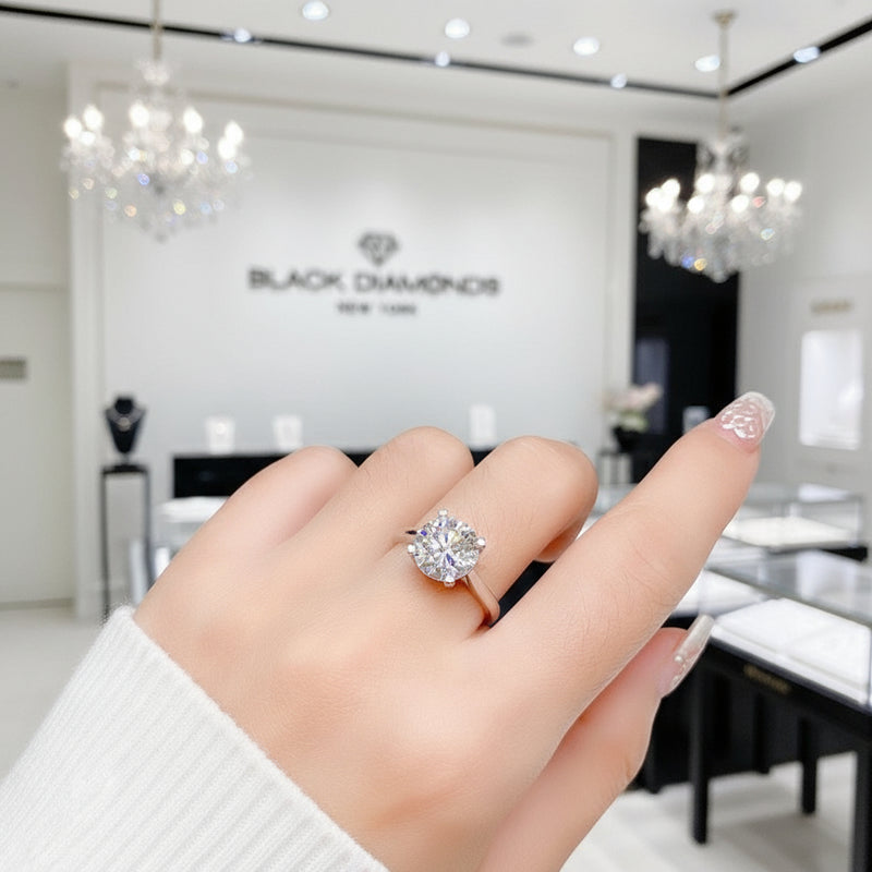 Unleash the beauty of love with our 3.0 carat Brilliant Round Cut Certified Moissanite Solitaire Engagement Ring. This captivating ring features a high-quality moissanite stone set in a 925 silver band dipped 5 times in Platinum, creating a dazzling and memorable piece of jewelry. Its affordable price tag makes it a perfect choice for those seeking a gorgeous yet budget-friendly ring. Embrace the allure and sophistication of Black Diamonds New York.