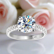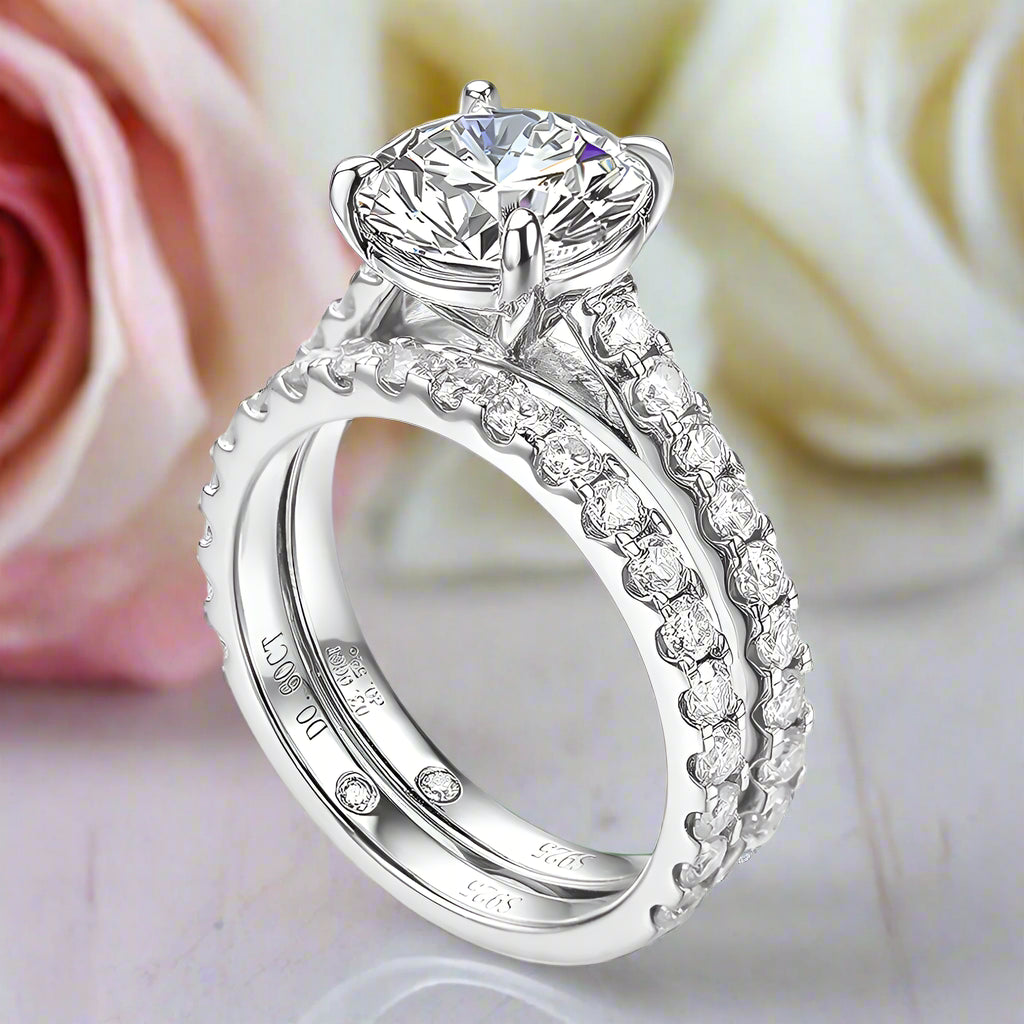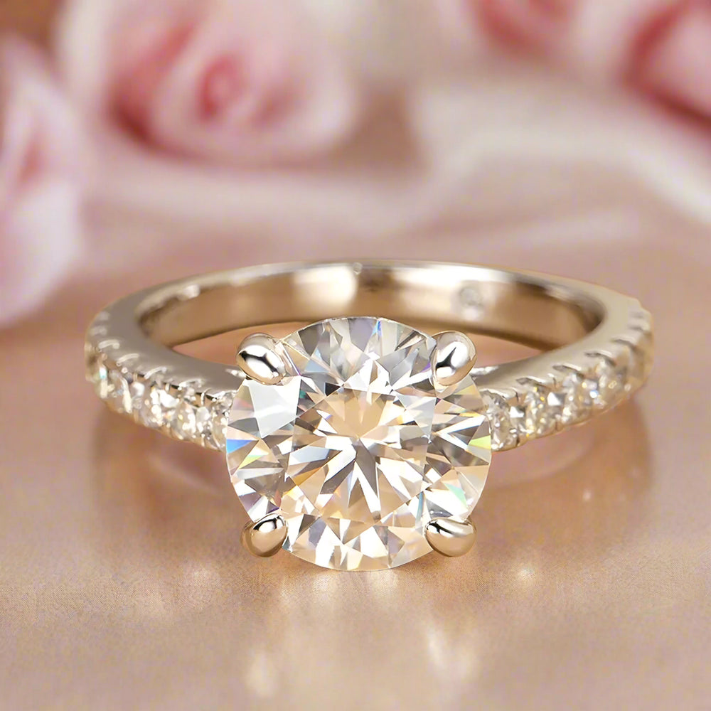 Elevate your engagement with our 3.0 Ct Round Certified Moissanite Diamond Engagement Ring Set from Black Diamonds New York. This eye-catching set boasts a stunning round cut moissanite stone that exudes elegance and charm. The 925 silver base, dipped 5x in 18k gold gives this ring set a high quality finish without the hefty price tag. Get ready to dazzle with this sparkly and captivating piece that will leave everyone in awe.
