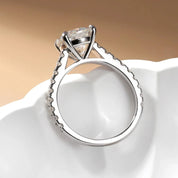 CERTIFIED MOISSANITE- stunning, near-colorless lab-grown gemstone (silicon carbide). Exhibits more fire (rainbow flashes) than diamonds. Hardness of 9.25 (Mohs scale), highly durable for daily wear. D-F color, VS1 Clarity, certified by GRA with a unique girdle code.