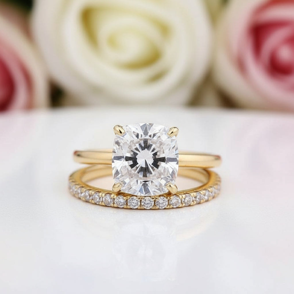 3.0ct 4 Prong Classic Yellow Gold Cushion Cut Bridal Ring