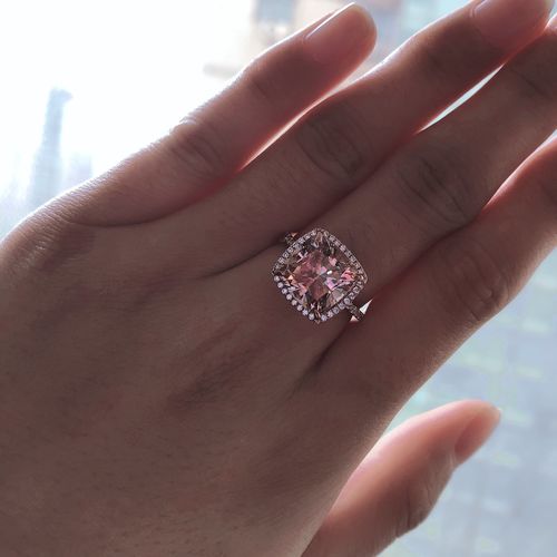 3.0ct Cushion Cut Morganite Halo Engagement Ring