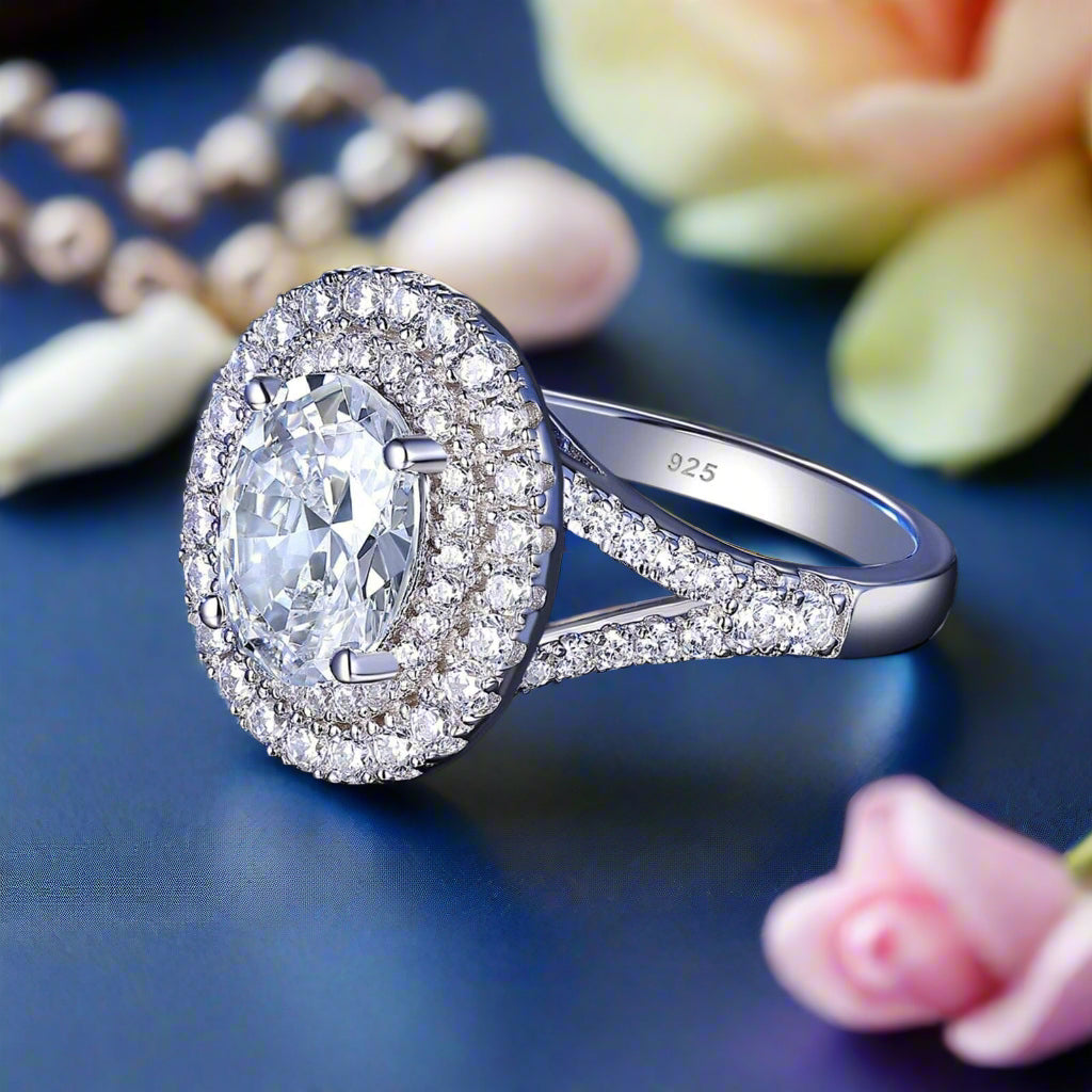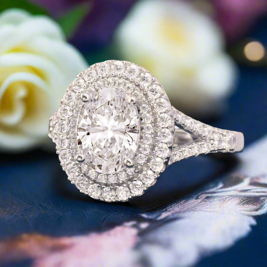 3ct Halo Oval Cut Diamond Double Halo Engagement Ring