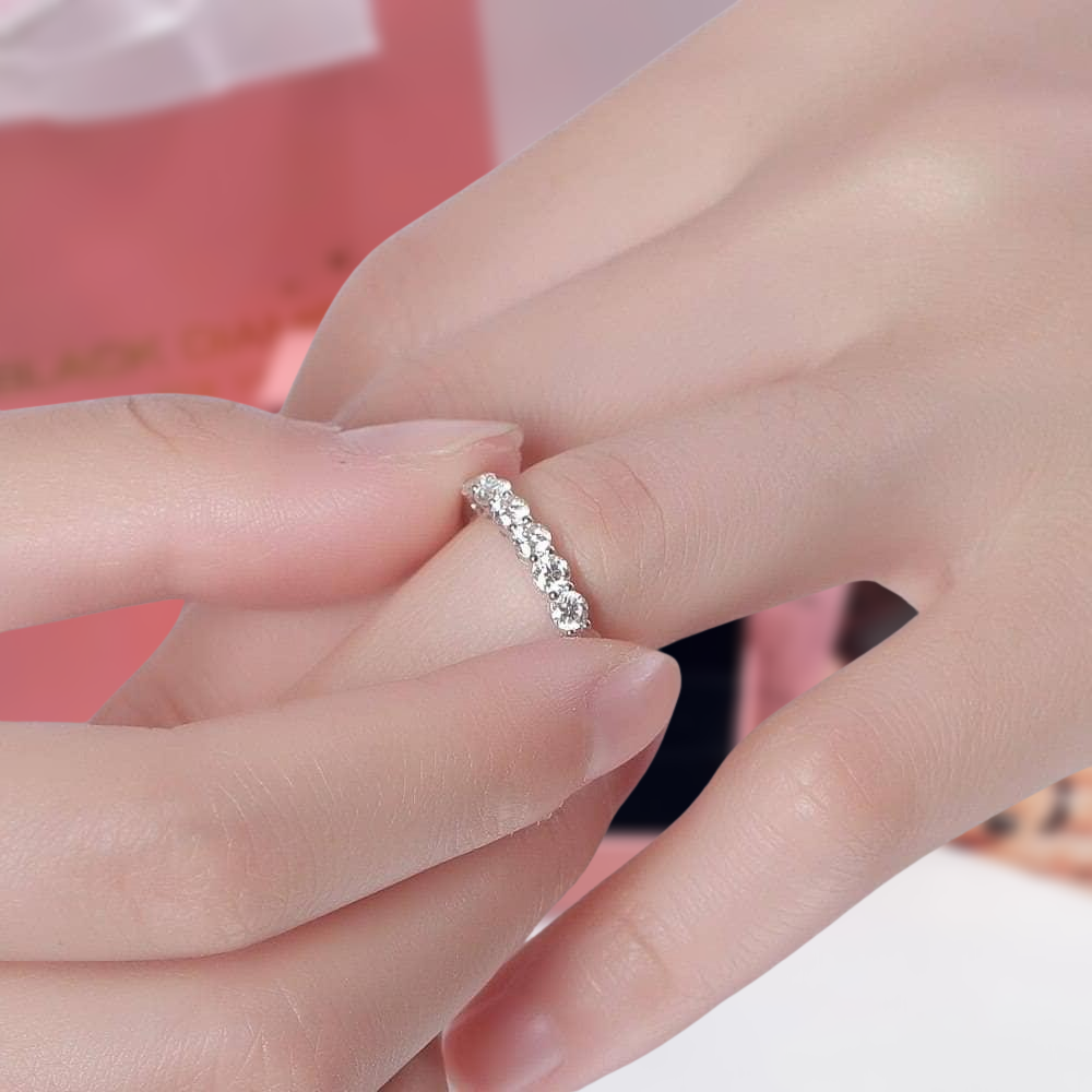 Say "I do" in style with our 3mm Round Cut Diamond Eternity Wedding Band from Black Diamonds New York. This half eternity ring features sparkling moissanite diamonds that exude a timeless elegance. The high-quality design guarantees a piece that will last a lifetime, all at a price that won't break the bank.