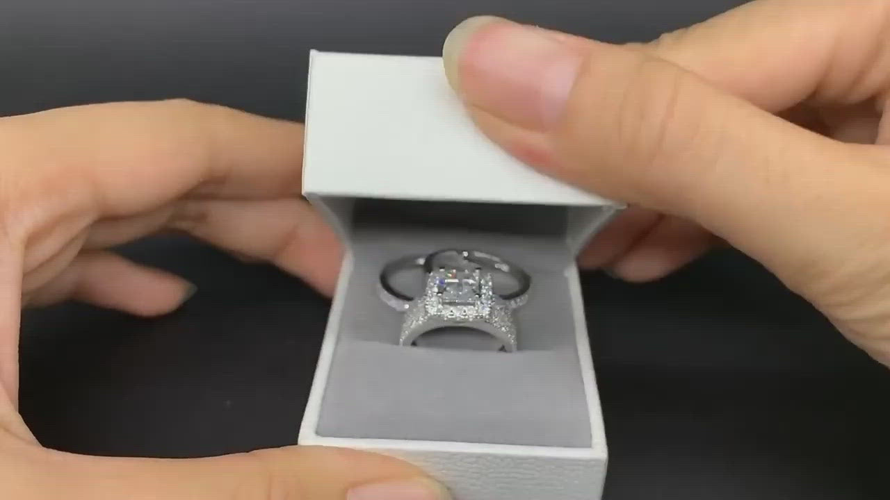 3Pcs Cross Princess Cut Diamond Halo Ring Set