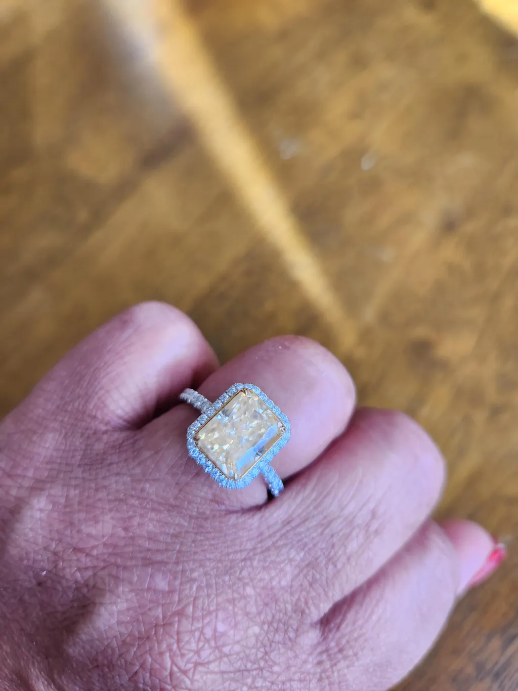 4.0 ct Light Yellow Radiant Cut Diamond Option Engagement Ring in 14k White Gold