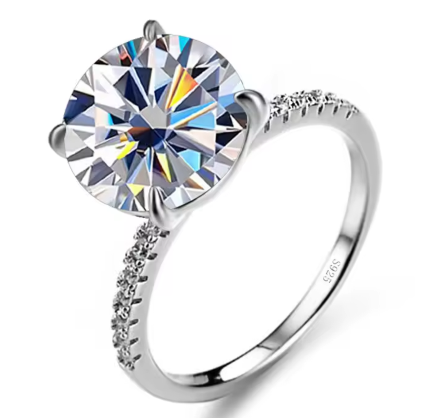 Fall in love all over again with our 5.0 Ct Certified Moissanite Classic Engagement Ring from Black Diamonds New York. Featuring a round cut diamond elegantly set in 6 prongs, this gorgeous ring is a timeless choice for your special moment. Enjoy the beauty of high quality design without breaking the bank - this ring is as affordable as it is mesmerizing.