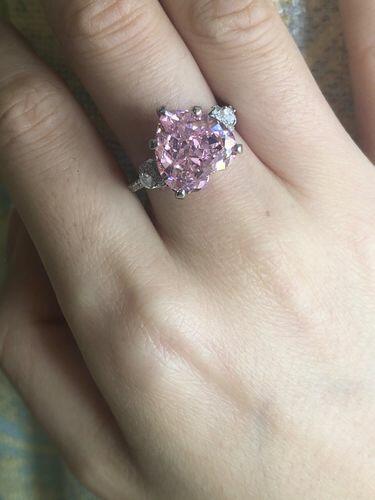 Make a statement with this stunning 5.0 carat pink heart-cut simulated diamond engagement ring. The romantic heart silhouette and vibrant pink hue create an eye-catching centerpiece that captures light beautifully. Perfect for those seeking a distinctive alternative to traditional cuts, this ring combines elegance with bold personality. An ideal choice for engagements, anniversaries, or anyone who loves jewelry that stands out.