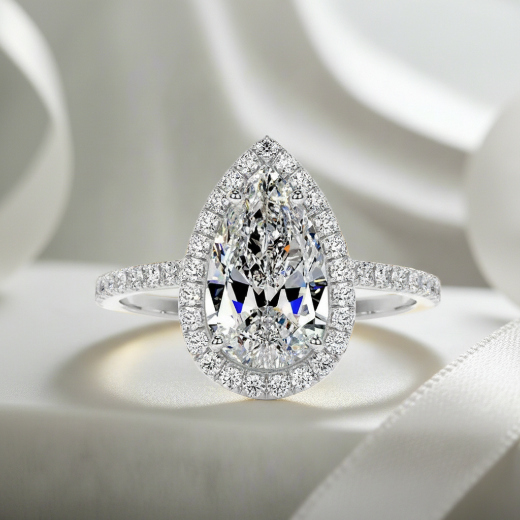6.0 ct Pear Cut Diamond Halo White Gold Engagement Ring
