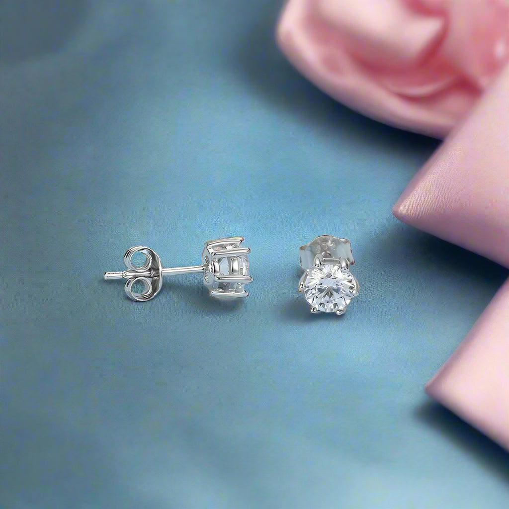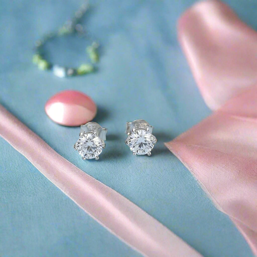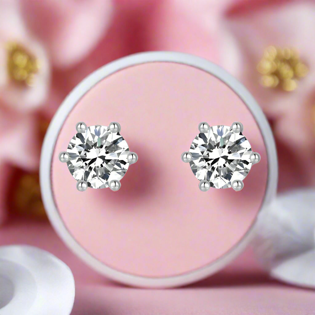 Crafted from premium moissanite diamonds and solid 925 Sterling Silver, these 6 Prong Solitaire Diamond Earrings are designed to endure a lifetime. Expertly handmade, they showcase remarkable brilliance and shimmer with the elegance of a natural diamond.