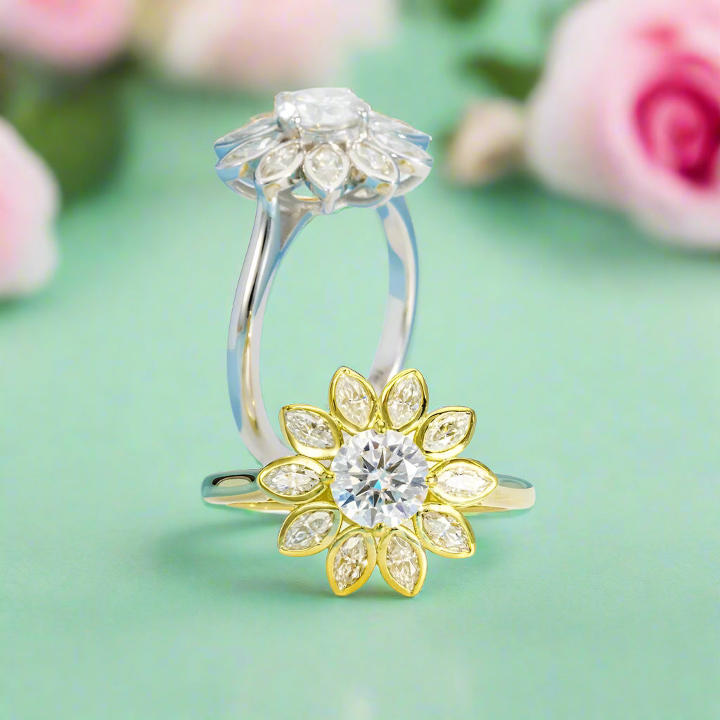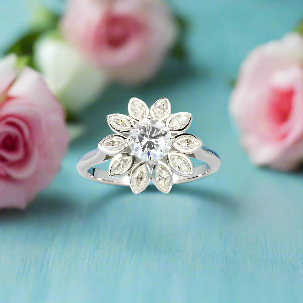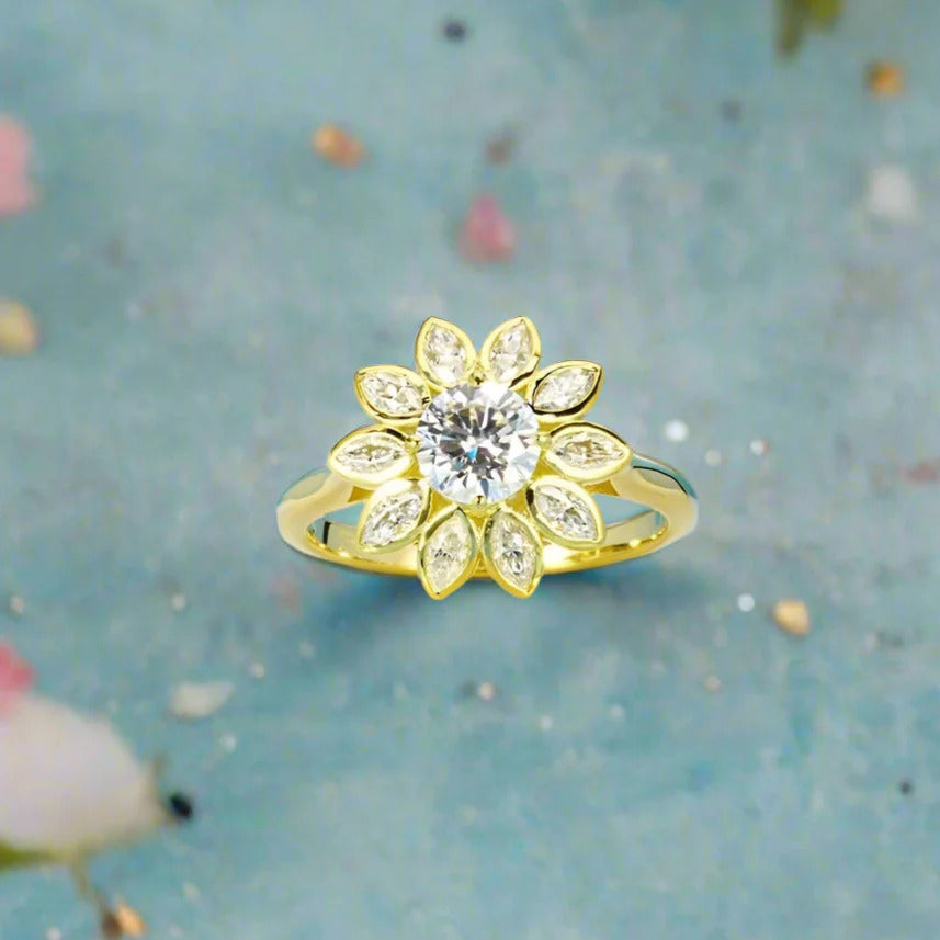 Add a touch of elegance to your jewelry collection with our 6mm Round Cut Certified Moissanite Flower Engagement Ring from Black Diamonds New York. Made with top-notch craftsmanship and high-quality 925 silver dipped 5x in 18K gold, this ring is both affordable and eye-catching. The sparkly moissanite stone set in a gorgeous flower shape will make you feel like a princess every time you wear it.