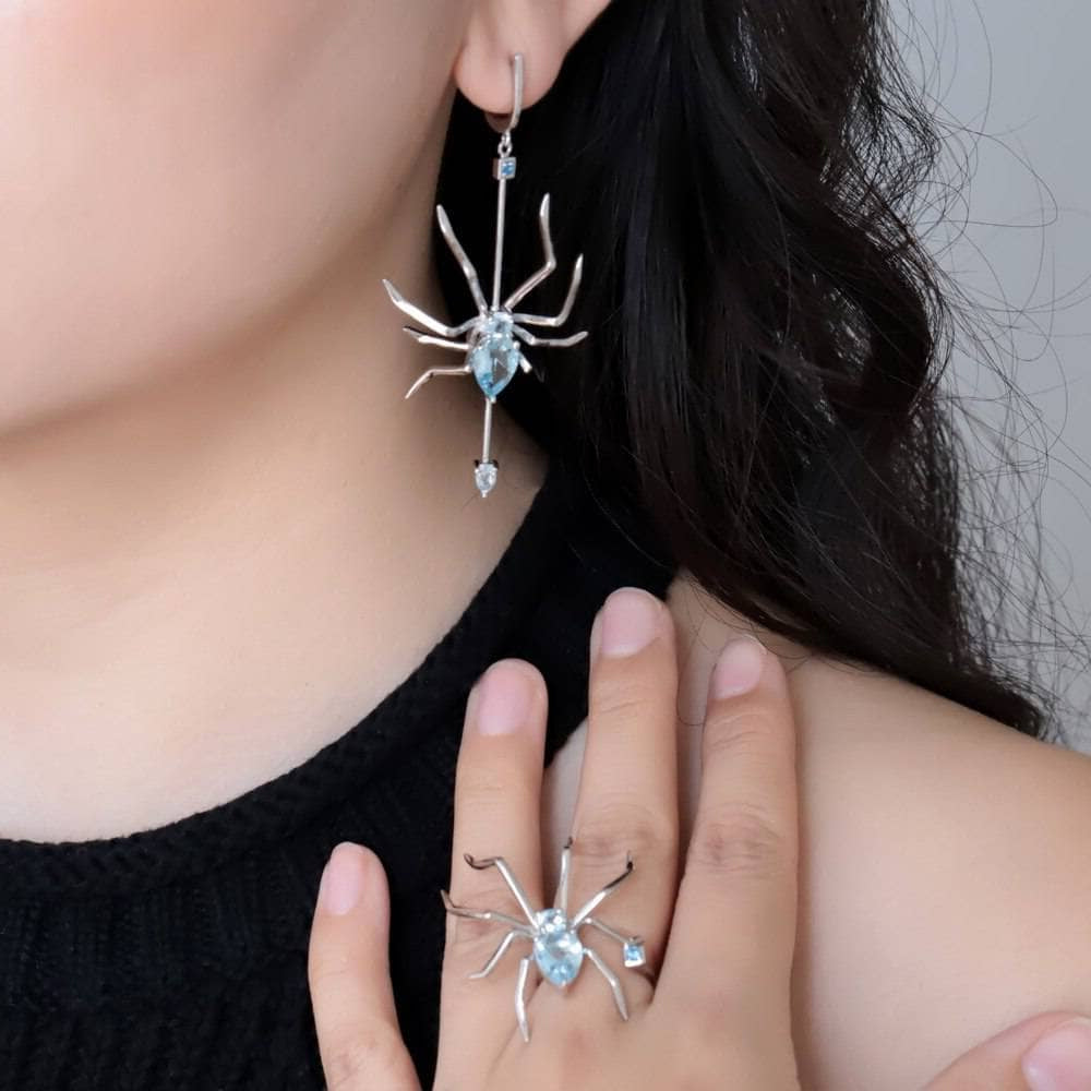 8.83Ct Natural Sky Blue Topaz Spider Gemstone Jewelry Set