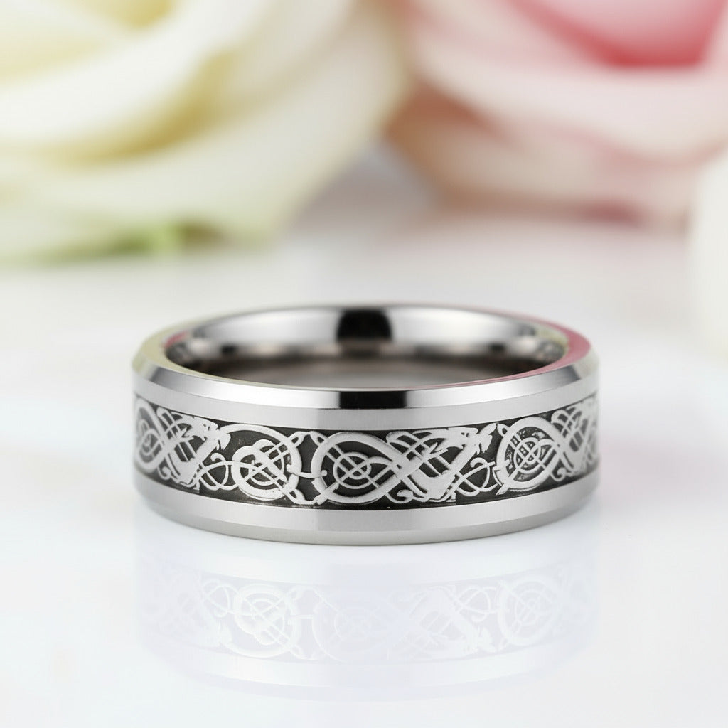 8mm Celtics Dragon Tungsten Carbide Men's Ring