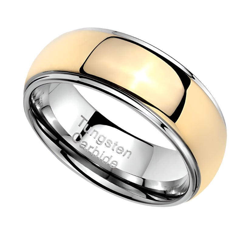 8mm Men's Tungsten Carbide Smooth Gold Ring
