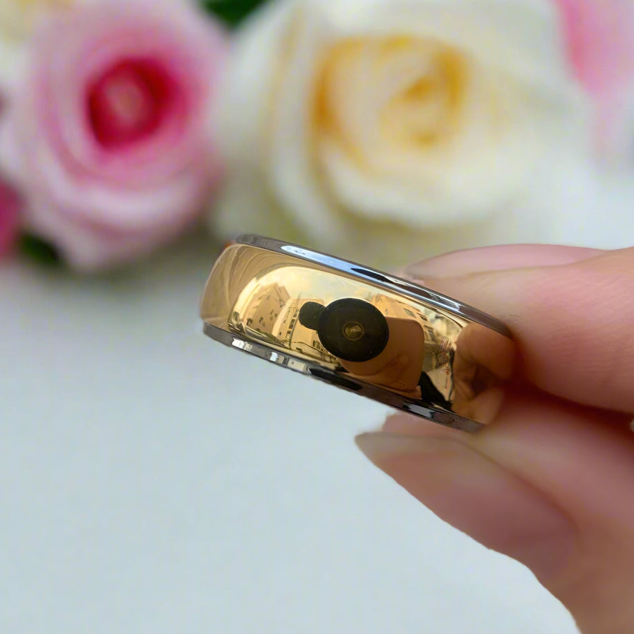 This 8mm men's tungsten carbide smooth gold ring is meticulously handcrafted to deliver an outstanding and elegant appearance. Designed for you, your loved ones, and those who cherish you, it’s the perfect symbol of lasting connection and style.