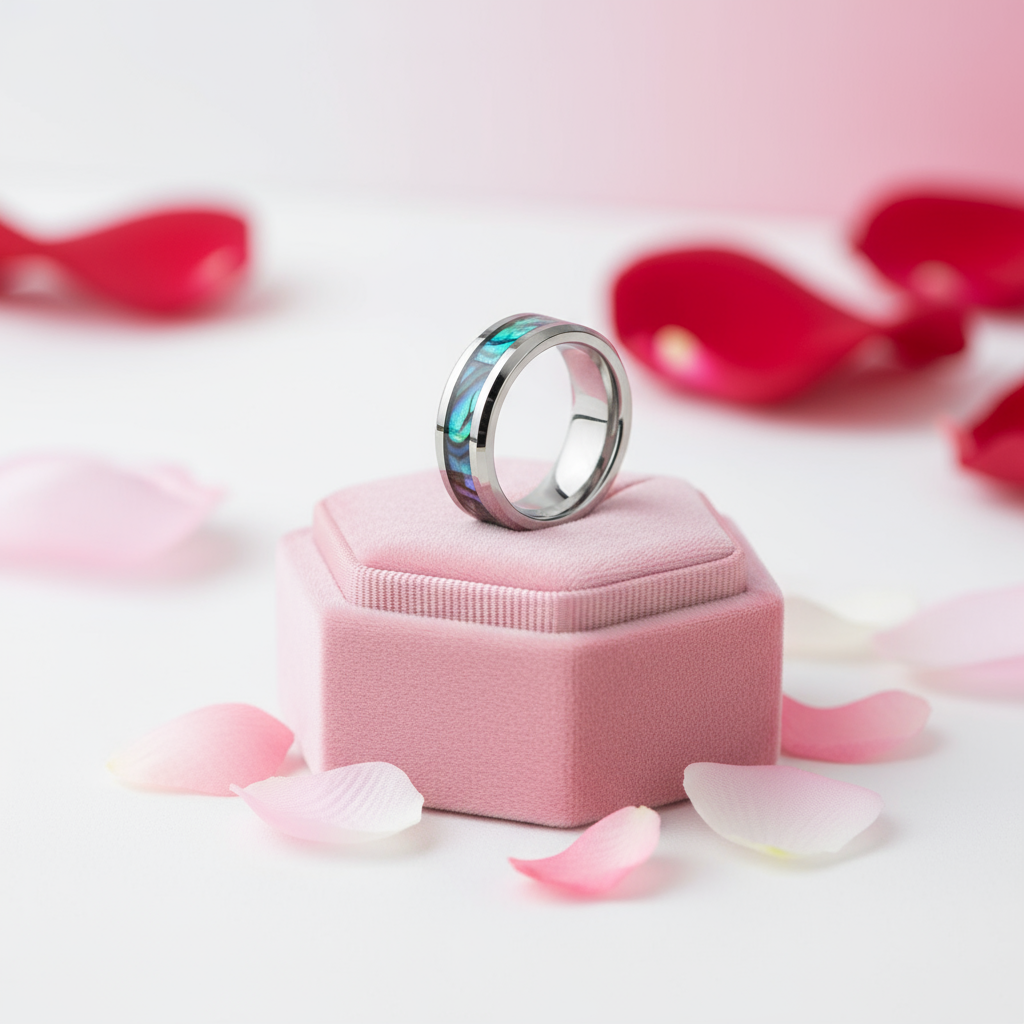 Take your vows with this beautiful 8mm Tungsten Carbide Wedding Band with Abalone Shell from Black Diamonds New York. Its comfort and durability make it a perfect choice for those looking for a ring that won't take a break from the daily grind. This unique band is sure to set you above the crowd.