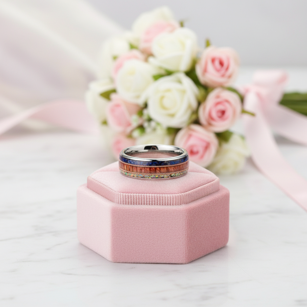 8mm Tungsten Wood & Opal Men's Wedding Band