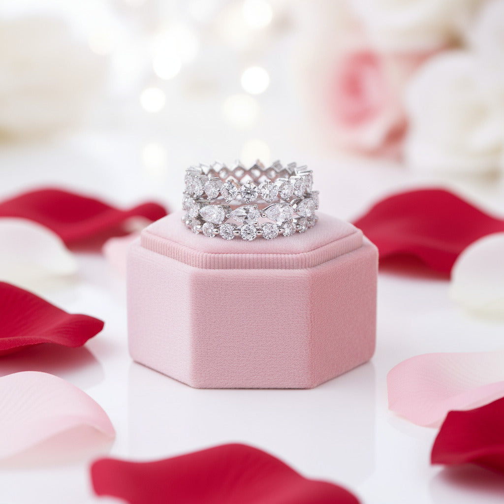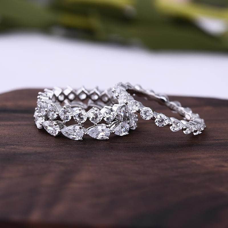 Art Deco Eternity 3PC Stacking Wedding Band Set
