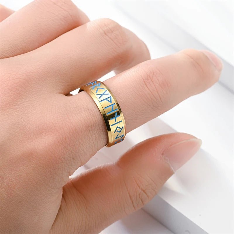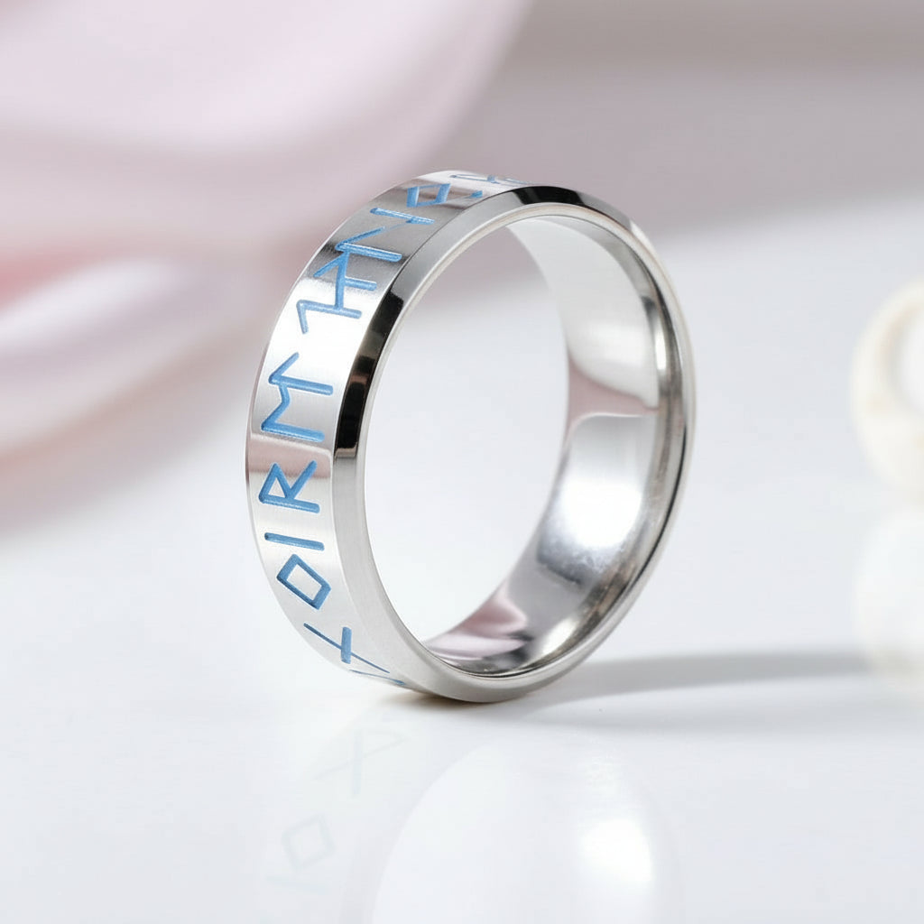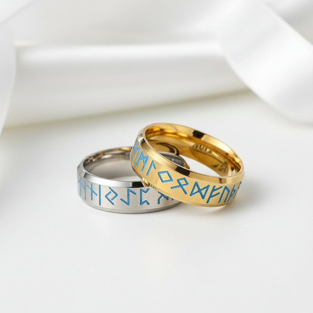 Unleash your inner fashion connoisseur with the Beveled Edge Vintage Rune Men's Wedding Band by Black Diamonds New York. Crafted with meticulous attention to detail, this 8mm wide ring boasts a beveled edge design that exudes timeless charm. The 18k yellow gold plating adds a touch of opulence, enhancing its allure. What makes this piece truly extraordinary is its ability to glow under the night light, creating an enchanting aura around it. Embrace the remarkable blend of style, quality, and affordability by adding this gorgeous wedding band to your collection, perfect for any man who seeks sophistication with a touch of intrigue.