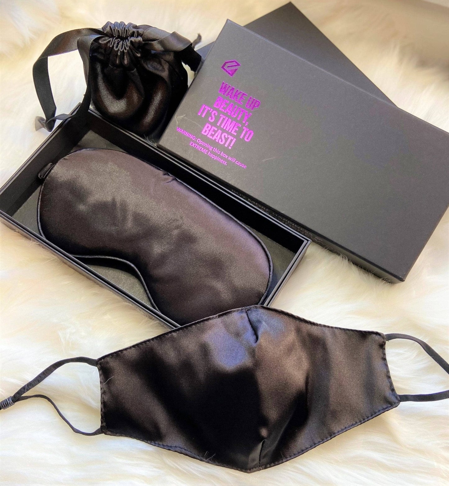 Black Silk Sleep Mask & Face Mask Luxe Gift Set.