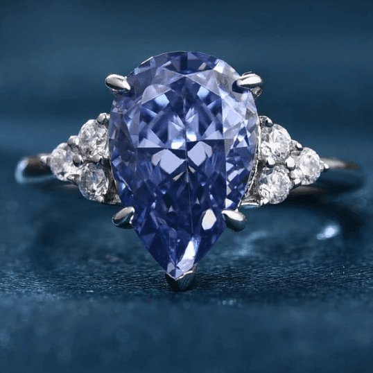 Add a special something to your next occasion with an affordable and stylish Blue Aquamarine Pear Cut Engagement Ring. Present it to the one you love and make them feel special with this luxurious and elegant ring. Crafted in a silver band with white gold plating and set with a dazzling blue diamond surrounded by round-cut accent stones, this luxurious and classic ring is perfect for any romantic occasion. Show that special someone the depths of your love with this stunning and luminous ring!
