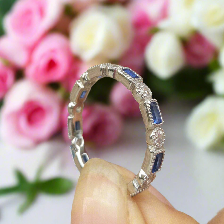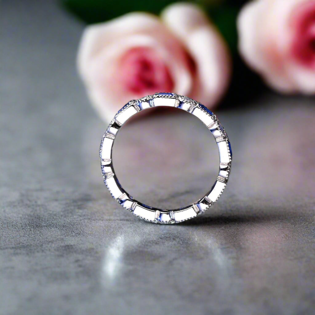 Please note that stone colors may vary slightly depending on the cut, size, stone carat, and type of stones/diamonds being used (e.g., Simulated Diamonds like Sona, Sapphires, Diamond Alternative, and Created Diamonds have more saturated hues compared to moissanite, lab diamonds, natural diamonds, and other gemstones). Please contact our team for more info.