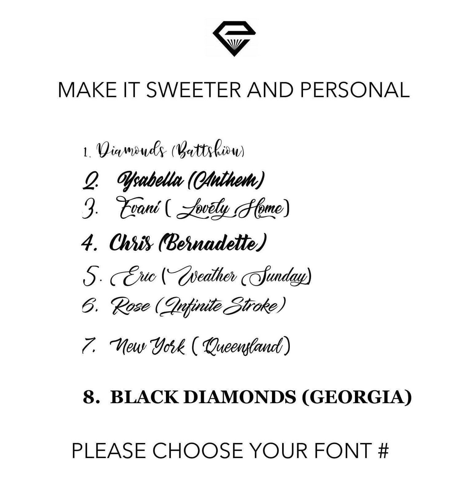 Personalize this stunning piece at no extra cost! Select your preferred stone colors (if applicable), metal finishes, inscriptions (up to 12 characters), and sizes. Simply detail your requests at checkout or email our team to confirm. Design-related restrictions may apply. Limited Stock Alert: This design is also available in natural, HPHT, and CVD lab-grown diamonds, as well as other natural gemstones, for immediate purchase, with only 1–2 pieces remaining. Contact our team for customization or upgrade options.
