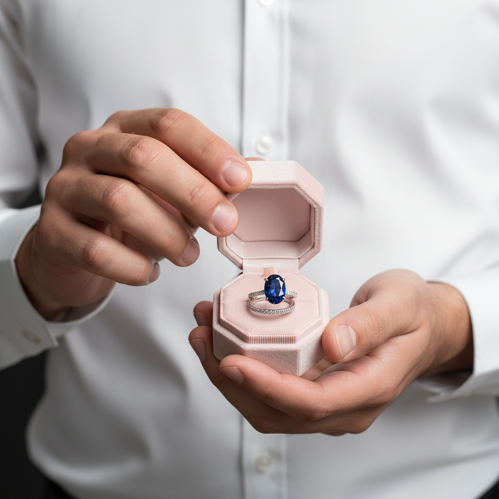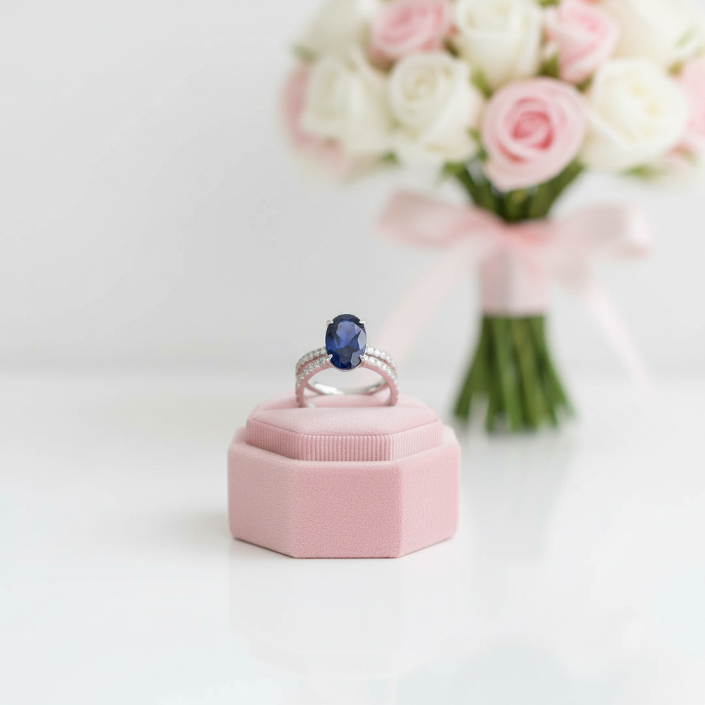 Timeless elegance meets sophisticated style with this stunning sapphire engagement ring set. The rich, deep blue oval-cut sapphire serves as a captivating centerpiece, framed by complementary metalwork that enhances its natural brilliance. Perfect for those seeking a distinctive alternative to traditional diamond rings, this set combines classic design principles with the luxurious appeal of fine gemstones. An heirloom worthy piece that makes a refined statement.