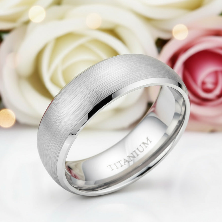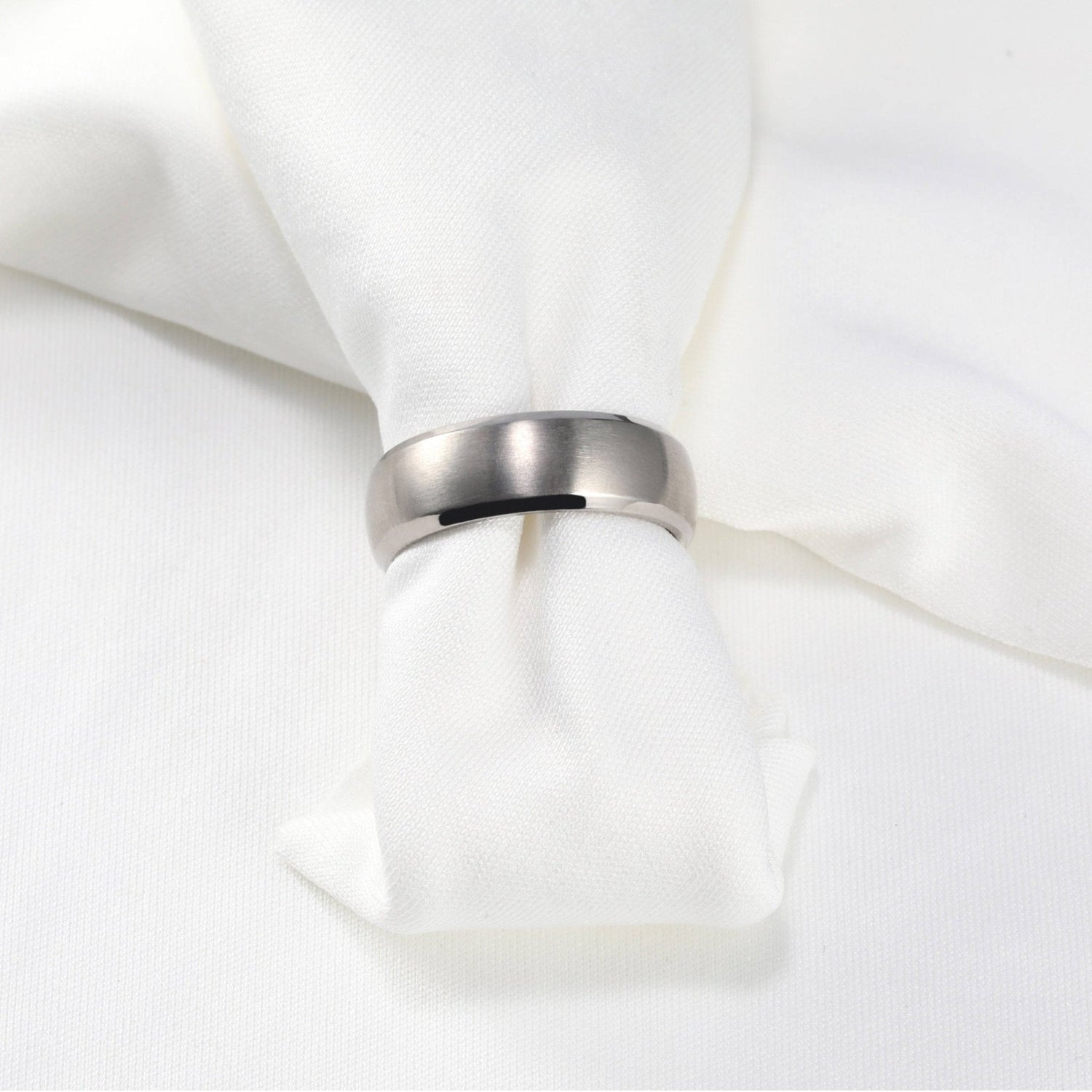Elevate your style and make a statement with the Classic Domed Titanium Wedding Band. Crafted from ethically sourced materials, this premium band is made to last a lifetime. Say goodbye to ordinary and overpriced wedding bands. Treat yourself to a timeless piece that exudes sophistication and elegance.