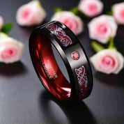 This classic ring, made of durable tungsten carbide and featuring a sparkling created diamond, has a sleek surface width of 8 mm and a sturdy thickness of 3.0 mm. The stone is set in a channel setting, making this piece perfect for wedding bands.