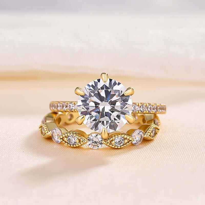 Classic Yellow Gold 6 Prong Round Cut Wedding Set