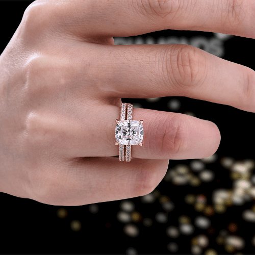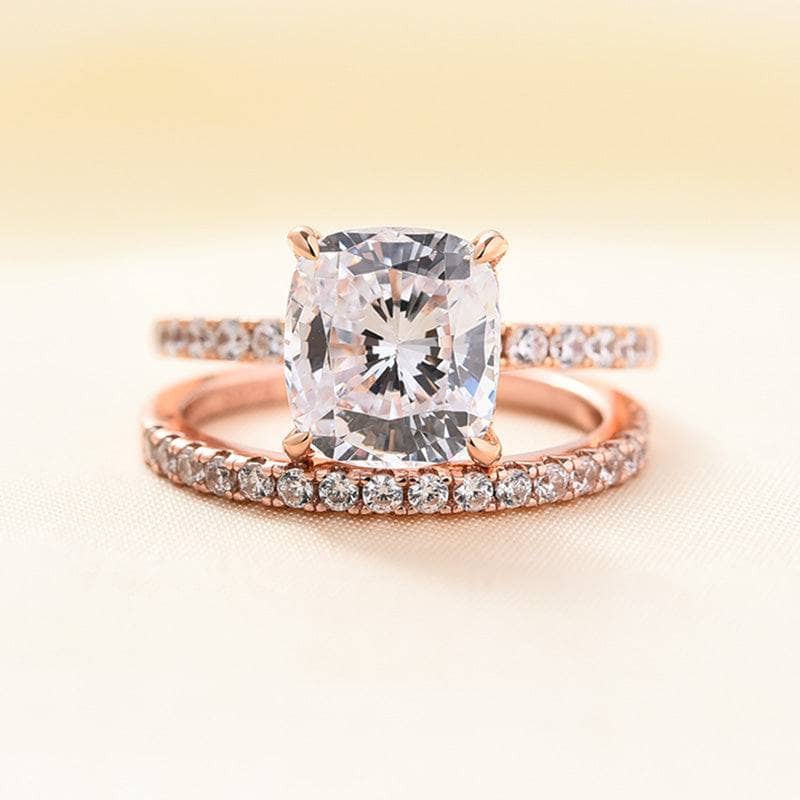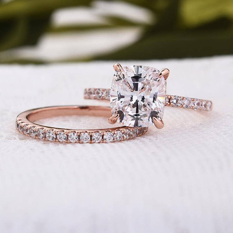 3.0ct Cushion Cut Rose Gold Clear Simulated Sapphire Wedding Ring Set