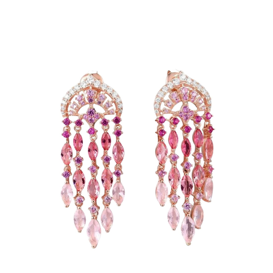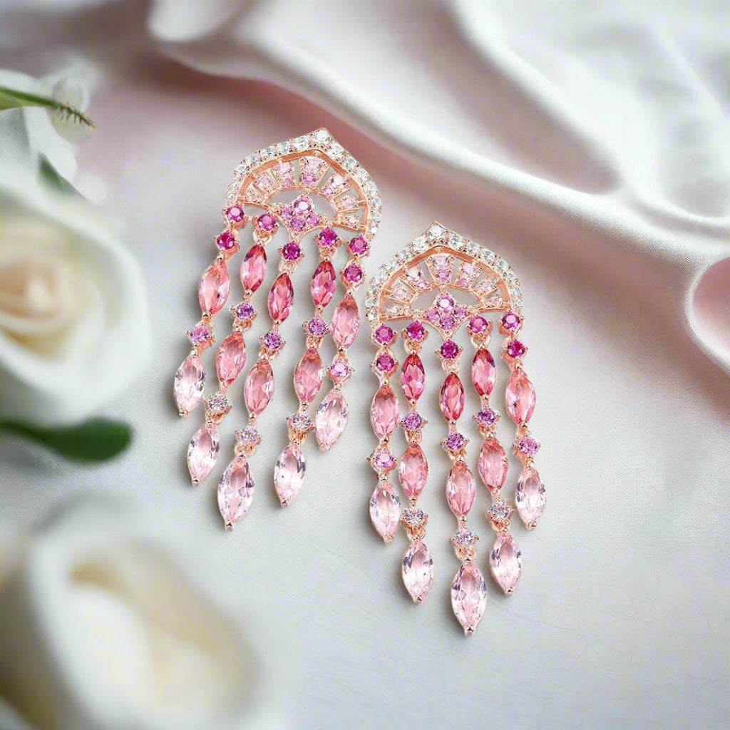 Created Pink Sapphire Ruby Ombre Raindrops Earrings