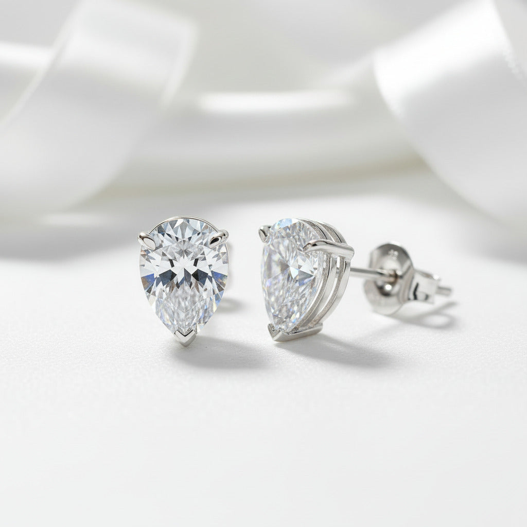 White Sapphire Pear Cut Women's Stud Earrings